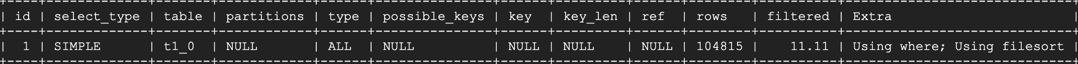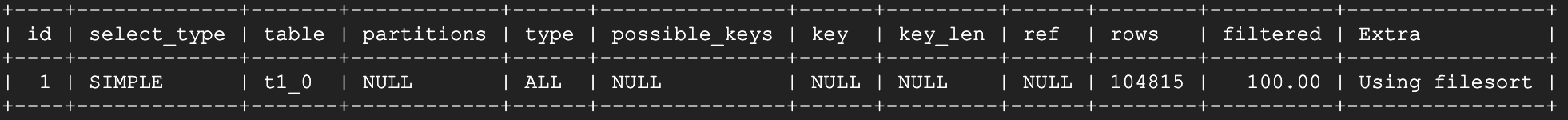 - Full Table Scan 발생: type이 ALL로 나타나며, 테이블 전체를 읽는 Full Table Scan이 발생합니다.