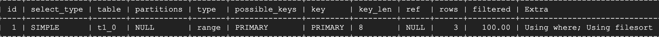 위에서 얻은 id를 통해 select를 진행하면서 테이블 풀 스캔을 하던 이전 방식과 달리 pk값을 이용한 범위검색이 진행되는 것을 볼 수 있습니다.